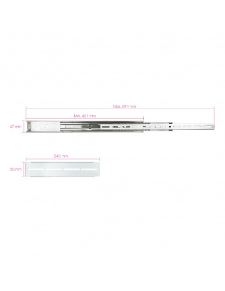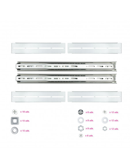 • Kit que inclui dois guias extensíveis, dois suportes e um saco de parafusos.