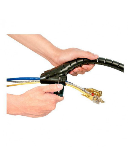 Mantenha os seus cabos organizados com o organizador de cabos espiral Lindy 40581. Com 5 metros de comprimento, este organizador é ideal para gerir grandes quantidades de cabos em racks de servidores ou outros equipamentos.  O seu design em espiral previne emaranhados, melhorando a estética e o fluxo de ar.  Fabricado em plástico resistente e na cor preta. Garantia de 36 meses.