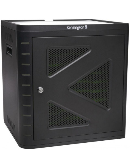 Gabinete para laptops Kensington com espaço para 10 tablets.  Ideal para escolas, empresas e lojas.  * Armazenamento seguro para até 10 tablets; * Design modular para pilhas; * Porta frontal resistente a vandalismo; * Fechadura com chave personalizável; * Dimensões: 43cm (Altura) x 40cm (Largura) x 35cm (Profundidade).
