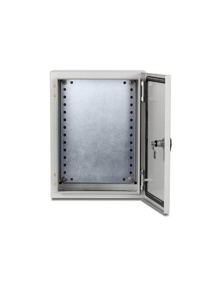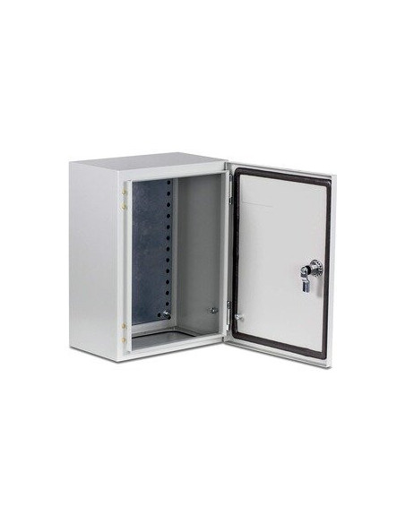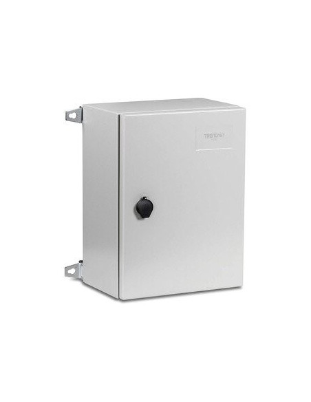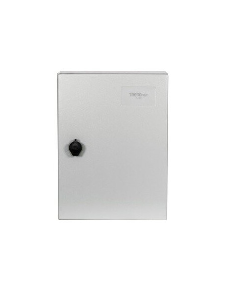 Gabinete exterior Trendnet robusto, ideal para proteger equipamentos em ambientes externos. Construído em aço, com classificação IP66, garante proteção contra poeira e água. Possui porta articulada com fechadura para segurança.