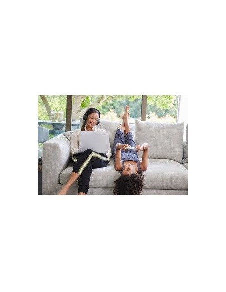 A tecnologia de cancelamento ativo de ruído (ANC) nos Evolve2 75 é totalmente ajustável através da aplicação Sound+. A ANC híbrida dual, tanto externa como interna, permite-lhe controlar o nível de cancelamento de ruído, garantindo concentração máxima, quer no metro, na rua, num café ou no escritório. Os Evolve2 75 estão equipados para otimizar a sua concentração em qualquer ambiente.