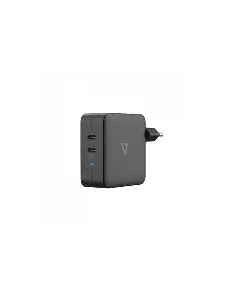 O carregador V7 65W USB-C PD GaN é um carregador de parede compacto e poderoso, projetado para carregar rapidamente seus dispositivos USB-C.  Equipado com duas portas USB-C, este carregador permite carregar simultaneamente dois dispositivos com tecnologia Power Delivery (PD). A tecnologia GaN (Nitreto de Gálio) utilizada neste carregador permite uma maior eficiência energética, resultando em um carregamento mais rápido e uma redução na geração de calor.  O carregador inclui adaptadores intercambiáveis para tomadas nos padrões EUA, Europa e Reino Unido, tornando-o ideal para uso em viagens internacionais.  A distribuição inteligente de energia garante que cada dispositivo receba a potência ideal, otimizando o processo de carregamento. Com seu design compacto e eficiente, o carregador V7 65W USB-C PD GaN é uma escolha perfeita para usuários que valorizam a velocidade, conveniência e portabilidade.