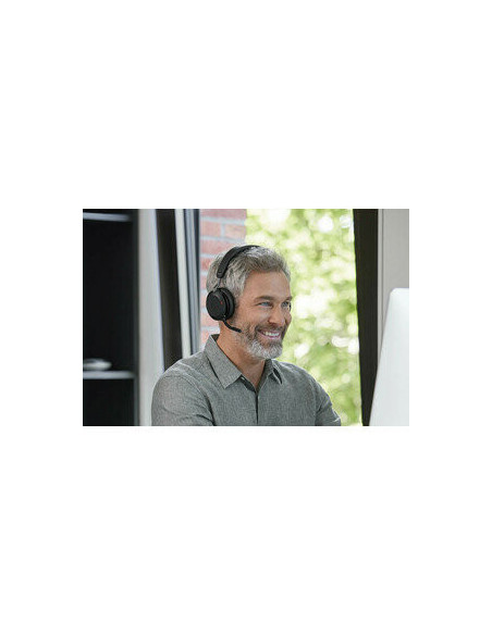 **Conforto e Design:** Os Evolve2 75 foram projetados com o conforto em mente. A espuma dual revolucionária e as almofadas auriculares redesenhadas oferecem um conforto excecional durante todo o dia de uso, sem gerar fadiga. O novo braço do microfone, 33% mais curto que o seu antecessor, otimiza o desempenho para ambientes ruidosos e cumpre os requisitos da Microsoft para escritórios abertos.