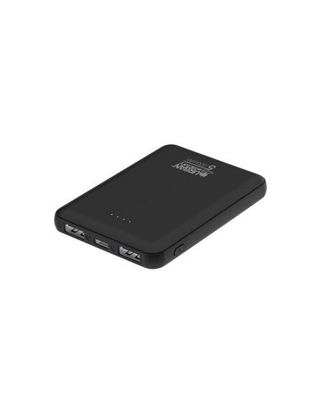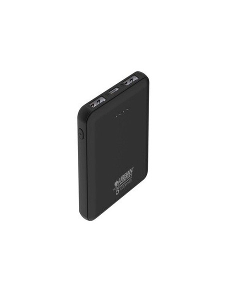 Powerbank Urban Factory JUICEE Max com 5000 mAh de capacidade, ideal para carregar seus dispositivos em movimento. Possui portas USB-A e USB-C (entrada) para maior conveniência. Bateria de polímero de lítio para maior segurança e durabilidade.