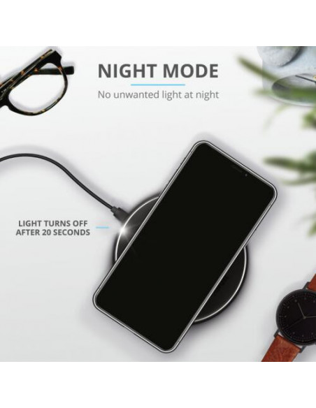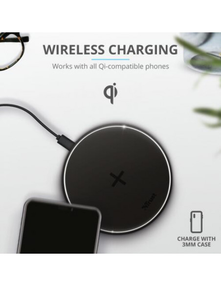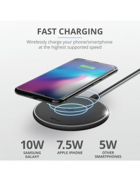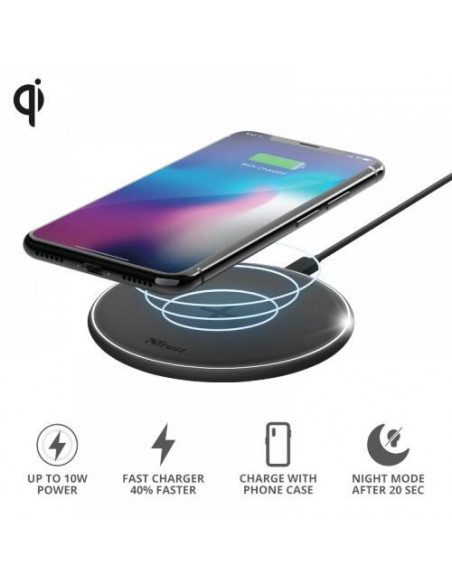 Carregador sem fios Qi Trust Qylo, com entrada USB-C, na cor preta. Para mais informações, contacte-nos.