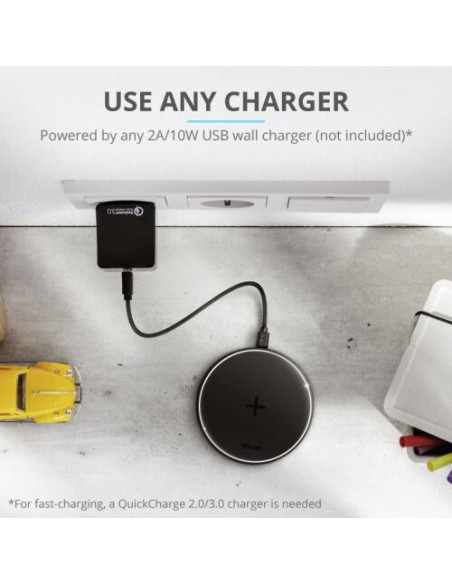 O Carregador Sem Fio Qi Trust Qylo, na cor preta, oferece uma solução cómoda e eficiente para carregar os seus dispositivos compatíveis com a tecnologia Qi. A sua interface USB-C garante uma compatibilidade ampla e uma rápida transferência de energia. Para obter informações detalhadas sobre as suas especificações e compatibilidade, contacte a nossa equipa ou consulte o site do fabricante.
