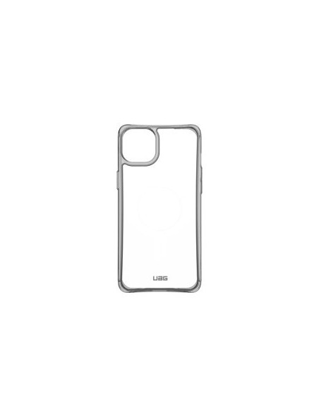 A capa UAG Plyo MagSafe para iPhone 14 Plus oferece proteção robusta contra quedas e riscos.  Compatível com carregamento MagSafe, apresenta um design monocromático e transparente.