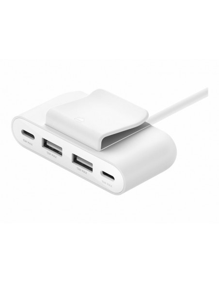 O Hub USB-C Belkin BUZ001BT2MWHB7 é uma solução prática e eficiente para expandir a conectividade do seu dispositivo USB-C.  Este hub compacto oferece quatro portas de saída: duas USB-C e duas USB-A, permitindo carregar e transferir dados para diversos dispositivos simultaneamente.  A sua cor branca confere um toque elegante, complementando a estética moderna de qualquer ambiente.
