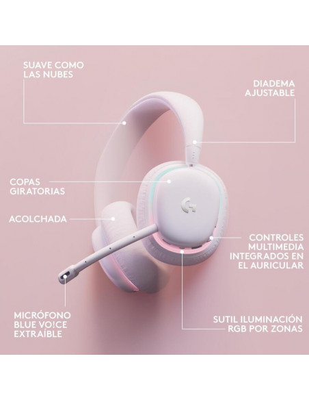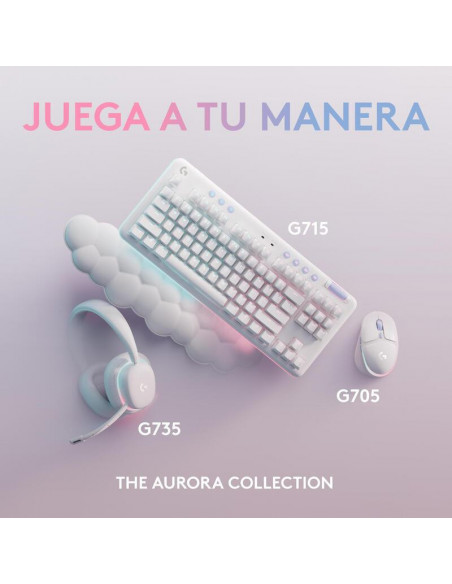 Para garantir uma comunicação clara e nítida durante o jogo, os G735 incluem um microfone destacável com a tecnologia Blue VO!CE, conhecida pelos seus filtros de som avançados. Os controlos multimédia integrados nas auriculares facilitam a gestão de áudio. Para uma maior personalização, a Logitech disponibiliza almofadas e microfones em várias cores (vendidas separadamente). Os G735 fazem parte da coleção Aurora, combinando esteticamente com o rato G705 e o teclado G715 (vendidos separadamente).
