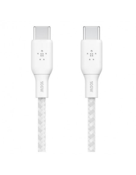 O cabo Belkin BOOST CHARGE USB-C oferece carregamento rápido e transferência de dados até 480 Mbit/s. Com 2 metros de comprimento, este cabo branco é ideal para conectar dispositivos USB-C, como smartphones, tablets e computadores portáteis.
