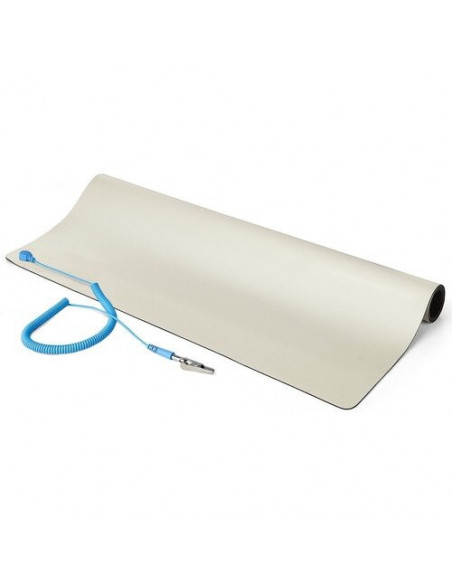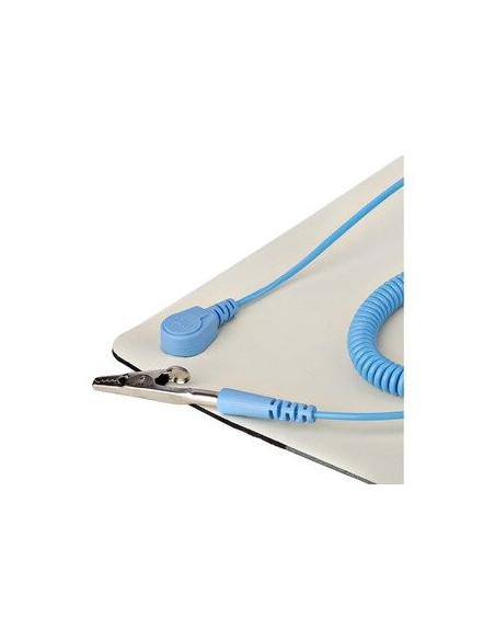 Esteira antiestática StarTech.com, 60cm x 120cm, ideal para reparação de eletrónicos. Cumpre a norma ANSI/ESD S4.1. Inclui cabo de terra removível. * Superfície antiestática; * Dimensões: 60cm x 120cm; * Cabo de terra; * Compatível com norma ANSI/ESD S4.1; * Material: PVC.