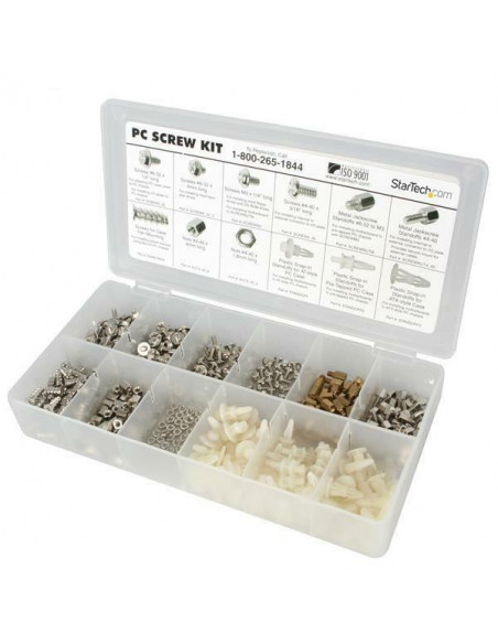 Kit de parafusos, porcas e espaçadores StarTech.com PCSCREWKIT, ideal para montagem e reparação de computadores. Inclui uma grande variedade de parafusos em diferentes tamanhos e tipos, para atender a diversas necessidades.