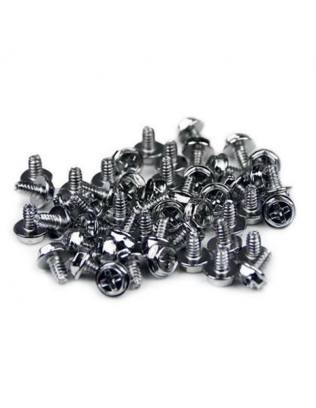 Kit com 50 parafusos StarTech #6-32 x 1/4 polegadas para computadores. Cabeça hexagonal, fenda Phillips. Ideal para montagem e reparação de PCs. Garantia de 2 anos.