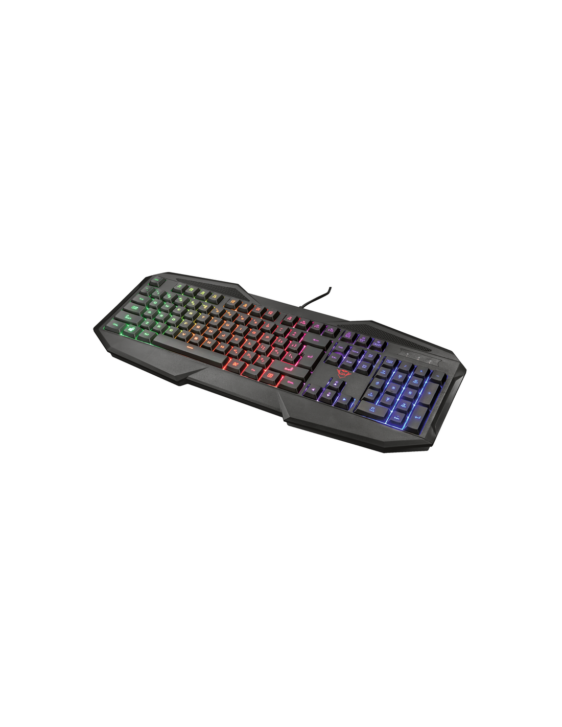 Teclado para jogos de tamanho normal, iluminação efeito onda arco-íris e 12 teclas multimédia.