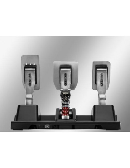 A construção robusta e totalmente metálica dos pedais, com cabeças e braços metálicos, garante um bom agarre e otimiza a sensação de controlo durante as corridas. Os pedais são ajustáveis de forma independente em altura, inclinação e espaçamento, permitindo configurar a posição ideal para o seu conforto e estilo de condução. Para finalizar o ajuste, o software de calibração permite ajustar eletronicamente a força de frenagem e as zonas mortas dos três pedais.