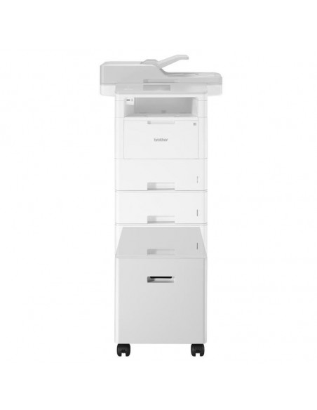 Mesa/Pedestal Brother ZUNTL6000W, na cor cinza claro, para utilização com impressoras laser monocromáticas da série L6000. Oferece suporte e organização para a sua impressora.