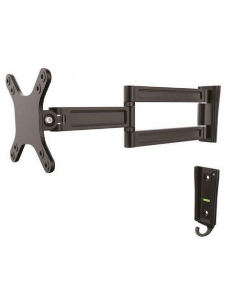 Suporte de monitor StarTech ARMWALLDS, compatível com monitores até 27 polegadas e com capacidade de carga máxima de 15 kg.  Construído em aço, na cor preta.  Não inclui compartimento para objetos ou passagem de cabos. Garantia de 24 meses.