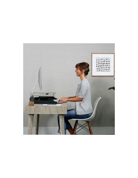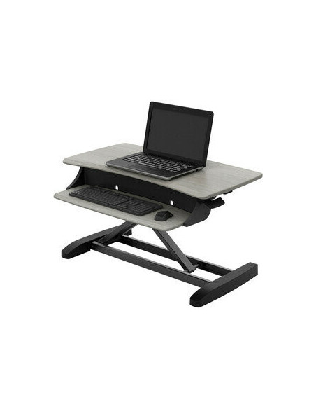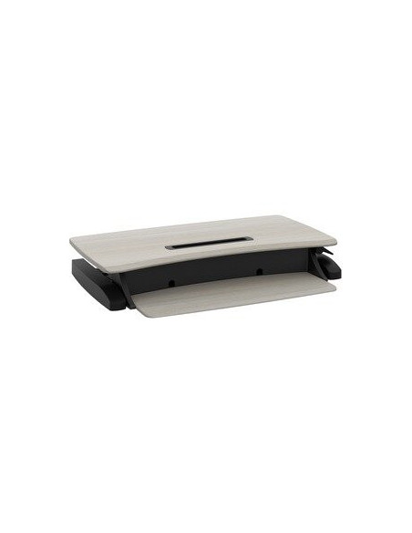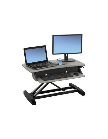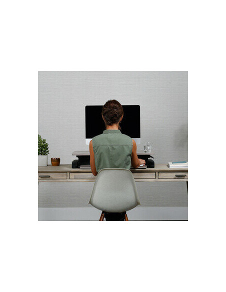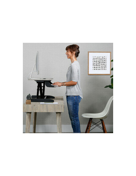 Com uma capacidade de carga máxima de 11,34 kg, a WorkFit-Z Mini suporta com segurança a maioria dos portáteis, monitores e outros equipamentos de escritório. O tampo de trabalho retangular em madeira confere um toque de elegância e praticidade, enquanto o acabamento em cinza-pombo contribui para um ambiente de trabalho mais moderno e sofisticado.