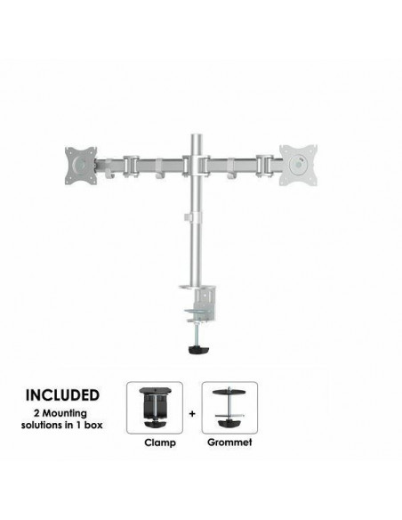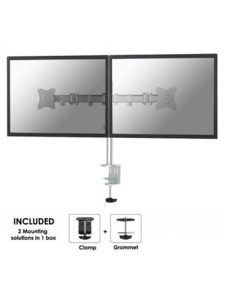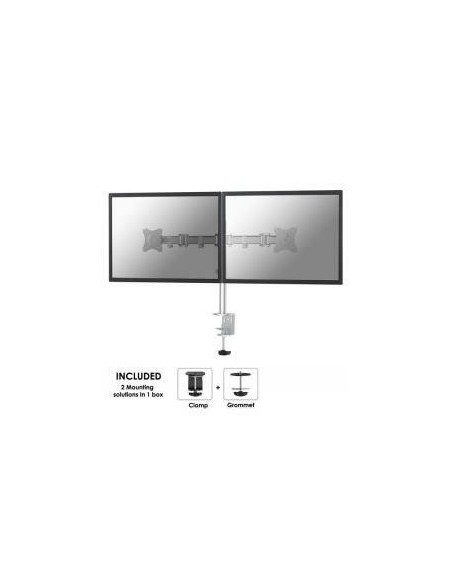 Newstar Soporte de escritorio para monitor. Capacidad máxima de peso: 8 kg, Tamaño mínimo de pantalla: 25,4 cm (10´´), Tamaño máximo de pantalla: 68,6 cm (27´´), Compatibilidad con interfaz de montaje (min): 75 x 75 mm, Compatibilidad con interfaz de montaje (max): 100 x 100 mm. Ajustes de altura, Ángulo de inclinación: 0 - 90°. Color del producto: Plata