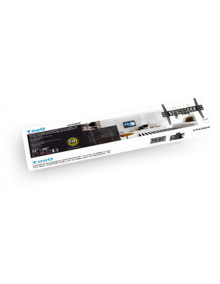Características y Estándares\n\nSoporte ultra compacto que le permite fijar su monitor/TV LCD, Plasma y LED de 32” a 60” pulgadas a una distancia de la pared de 74mm. Realizado con materiales de alta calidad soporta hasta un máximo de 75 kg. de peso.\n\nCompatible con los estándares VESA de fijación (maximo 600 x 400 mm)\n\nFácil y Rápido.\n\nIncluye manual de instrucciones y kit de montaje para que en unos minutos pueda disfrutar de su TV o monitor en el lugar elegido.\n\nSu Elección.\n\nCon 10 años de garantía y fabricado en metal de alta resistencia está disponible en negro metalizado. Siempre con la calidad de los productos Tooq y al mejor precio.\n\nEspecificaciones\n- Soporte monitor / TV LCD, PLASMA y LED (32"-60")\n- Kit montaje (No incluye herramientas)\n- Manual de instalación