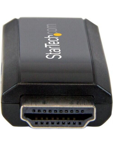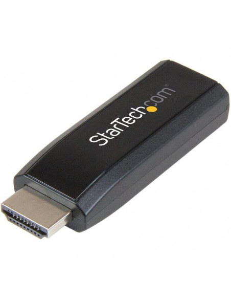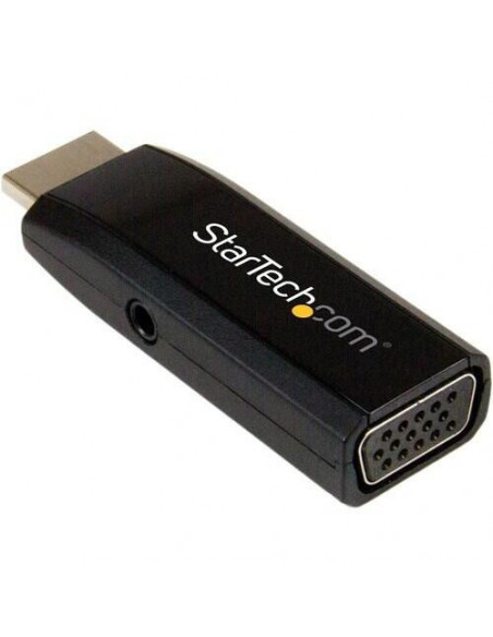 Adaptador compacto StarTech HD2VGAMICRA que converte sinal HDMI para VGA com saída de áudio separada.  Suporta resoluções até 1920x1200.  Plug and Play, fácil instalação.  Design compacto e leve.  Ideal para conectar computadores HDMI a ecrãs VGA.