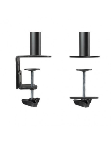 Suporte de mesa Tooq DB1200TN-B, ideal para monitores de 13 a 32 polegadas e portáteis. Permite ajustar a altura, inclinação e rotação do ecrã para uma posição de trabalho mais confortável. Suporta até 12,5kg de peso.  Montagem por abraçadeira ou parafusos.  Construção robusta e design elegante em preto.