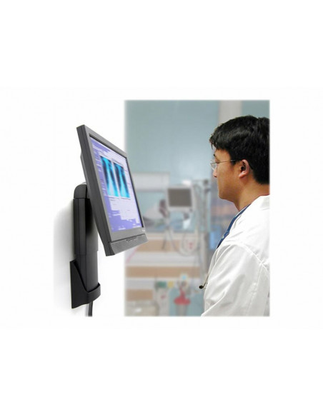 O suporte Neo-Flex de parede ocupa pouco espaço, menos de 10 cm da parede. Esta característica torna-o particularmente adequado para áreas com espaço limitado, como laboratórios, clínicas, aeroportos, call centers, fábricas, etc.
