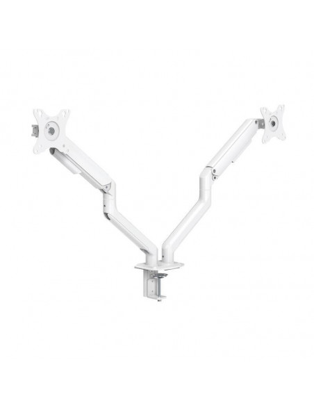 O suporte de monitor Tooq DB4132TNR-W proporciona flexibilidade e ergonomia ao seu espaço de trabalho, permitindo a instalação de dois monitores de 17 a 32 polegadas. Graças ao seu sistema de amortecimento por molas, o ajuste da posição dos monitores é suave e preciso. O suporte permite ajustes de inclinação (+55º/-55º), rotação (+90º/-90º) e rotação de 360º, adaptando-se às suas necessidades posturais e otimizando o conforto durante longos períodos de utilização. A altura do suporte também é ajustável até 428 mm, permitindo que personalize a posição dos seus monitores à sua altura de trabalho. Com uma capacidade máxima de 9kg por braço, o suporte é robusto e estável, suportando monitores de diferentes tamanhos e pesos. A sua instalação é simples, podendo ser feita por abraçadeira ou por parafuso, adaptando-se a diferentes tipos de mesas. O suporte inclui um sistema de gestão de cabos, mantendo a sua área de trabalho organizada e livre de fios emaranhados. Compatível com padrões VESA de 75x75 e 100x100, este suporte é uma excelente opção para quem procura uma solução ergonómica e eficiente para a sua configuração de monitores múltiplos. O seu design em branco confere um toque moderno e elegante ao seu ambiente de trabalho.