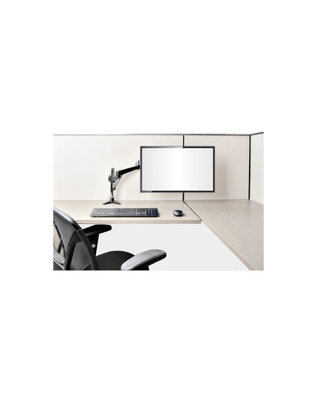 Sua articulação de movimento total permite ajustes precisos: +90 graus a -90 graus de rotação horizontal, +90/-85 graus de inclinação, e uma impressionante rotação de 360 graus da tela (permitindo modos retrato e paisagem). O braço inteiro também gira 360 graus em torno do poste, fornecendo flexibilidade máxima.