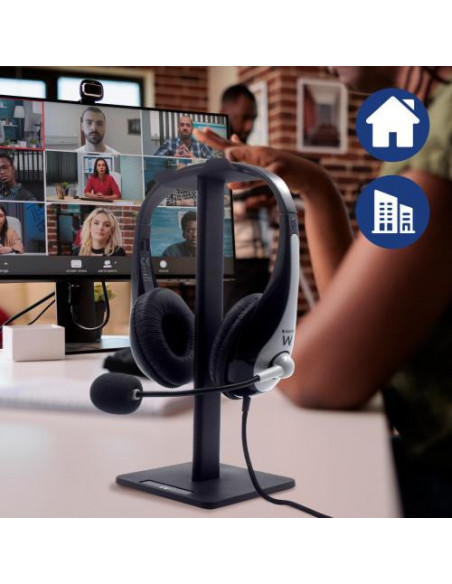 Suporte para auscultadores Ewent EW1586, em alumínio, com design moderno e compacto. Ideal para organizar os seus auscultadores de mesa, ocupando pouco espaço e mantendo o seu espaço de trabalho arrumado. Compatível com a maioria dos auscultadores de diadema, tanto com e sem fios. A base antiderrapante garante estabilidade.