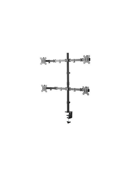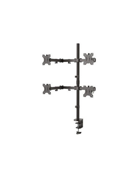 O suporte de mesa Neomounts by Newstar FPMA-D550D4BLACK é ideal para monitores e ecrãs planos.  Oferece ajuste de altura, inclinação de 90°, rotação de 360° e gestão de cabos. Suporta até 4 ecrãs com um peso máximo de 32kg. Compatível com padrão VESA 75x75 e 100x100.