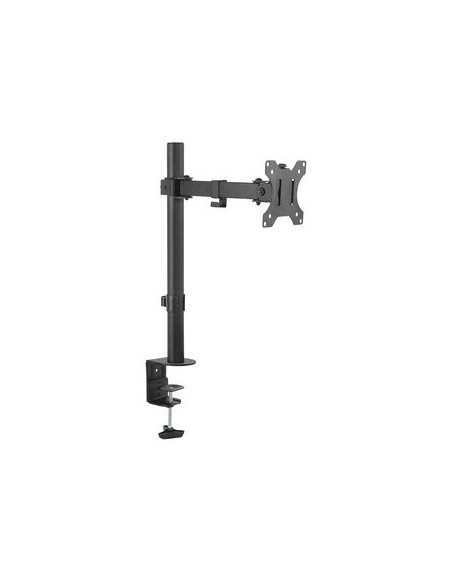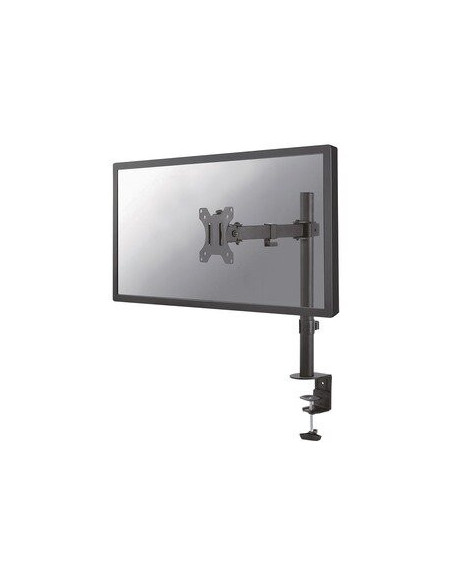Suporte de monitor Neomounts by Newstar para mesas, com capacidade para ecrãs de 13 a 32 polegadas (33 a 81,3 cm).  Ajustável em altura, inclinação e rotação.  Suporta até 8 kg.  Montagem por abraçadeira ou orifício na mesa. Cor preta.