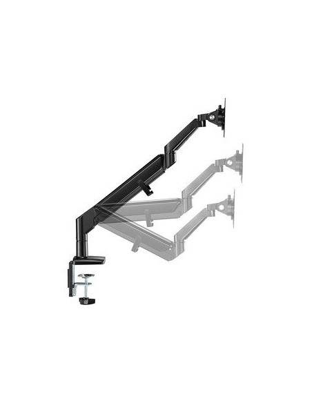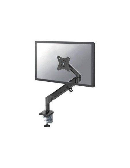 Suporte de monitor NEOMOUNTS by Newstar para mesas, compatível com monitores de 17 a 32 polegadas (43,2 a 81,3 cm).  Montagem por abraçadeira ou orifício na mesa.  Ajustável em altura, inclinação e rotação.  Capacidade de carga de 9kg.  Acabamento preto.