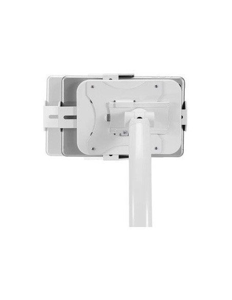 Concebido em aço branco, o suporte destaca-se pela sua robustez e estabilidade. A sua altura ajustável permite adaptar o posicionamento do tablet às necessidades do utilizador, garantindo o conforto visual e ergonômico. Com capacidade de carga de 1 kg, o suporte suporta a maioria dos tablets disponíveis no mercado.