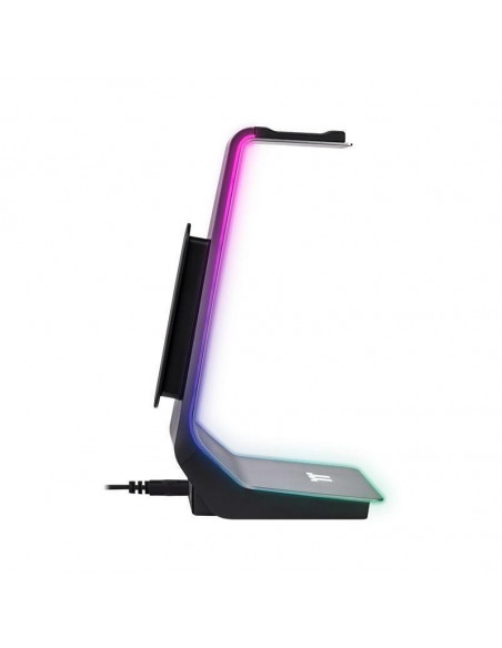 O suporte para auscultadores ThermalTake Argent HS1 RGB é uma solução elegante e funcional para organizar os seus auscultadores. Fabricado em alumínio de alta qualidade, este suporte possui iluminação RGB e portas USB adicionais.