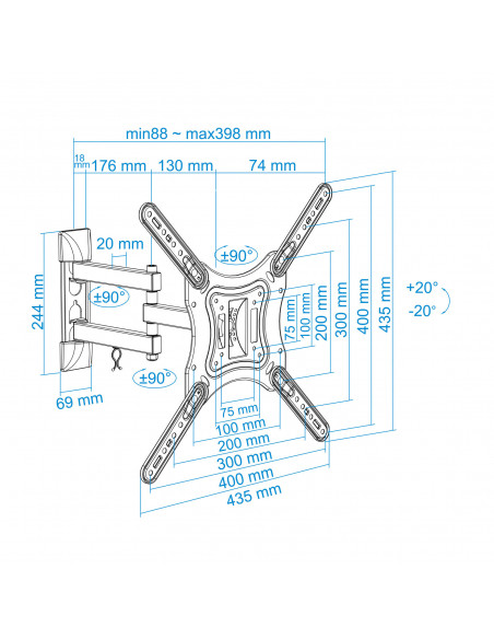 Suporte de parede com inclinação e giratório, para ecrãs desde 23" até 55".