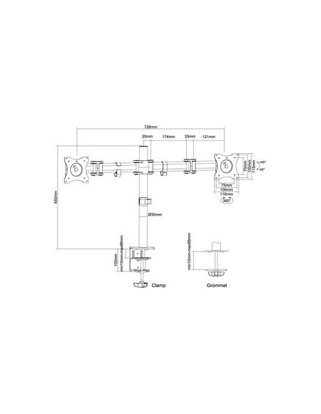 O suporte de mesa NEOMOUNTS NM-D135DBLACK é uma solução robusta e ajustável para monitores de até 27 polegadas. * Suporta até 16kg * Compatível com VESA 75x75 e 100x100 * Permite inclinação, rotação e pivotação * Fixação por braçadeira ou furo * Cor: Preto