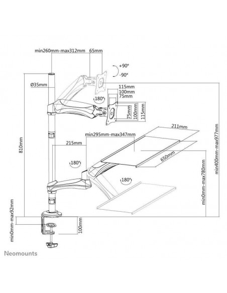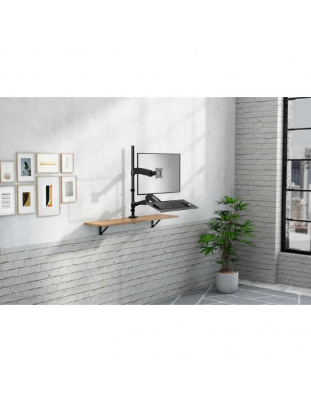Ajuste a posição de trabalho de acordo com as suas necessidades através dos dois pontos de articulação. As funções de giro, inclinação e rotação do ecrã, juntamente com o ajuste de altura até 78 cm e a profundidade ajustável entre 0 e 56 cm, garantem uma experiência personalizada e confortável. A distância entre o monitor e o teclado/rato é também ajustável. O suporte inclui uma braçadeira de mesa para fácil instalação num balcão, mas pode também ser montado na parede.