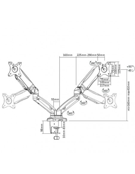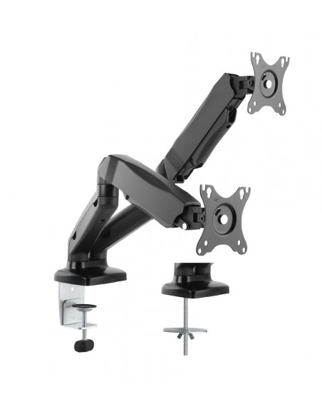 O suporte de secretária Napofix DM3200 é uma solução ergonómica e prática para organizar a sua área de trabalho com dois monitores. Compatível com a maioria dos monitores com dimensões entre 13" e 27" e padrão VESA 75x75 ou 100x100, este suporte permite ajustar a posição dos seus ecrãs para uma melhor visualização e conforto. Cada braço suporta até 8kg, num total de 16kg de capacidade de carga.