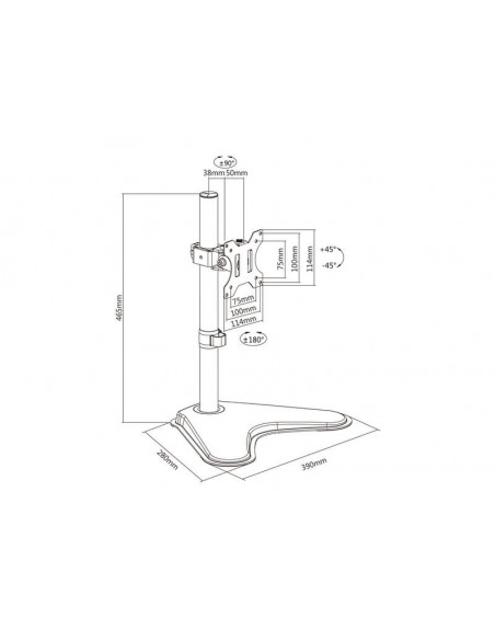 Equip 650122. Peso máximo (capacidade): 8 kg, Tamanho mínimo de ecrã: 33 cm (13"), Tamanho máximo de ecrã: 81,3 cm (32"), Suporte VESA mínimo: 75 x 75 mm, Montagem VESA máxima: 100 x 100 mm. Ângulo de inclinação: -45 - 45°, Orientação: -90 - 90°, Ângulo de rotação: 180°. Cor do produto: Preto