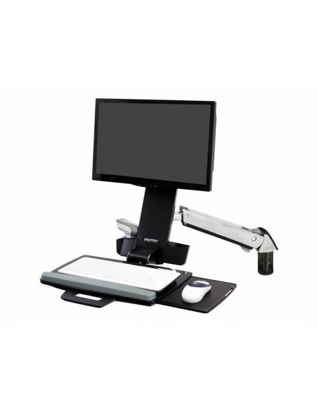 Suporte para monitor Ergotron, modelo 45-266-026, concebido para monitores de até 24 polegadas e com peso máximo de 9kg. Compatível com padrões VESA 75 e 100. Oferece uma solução versátil para trabalho em pé ou sentado.