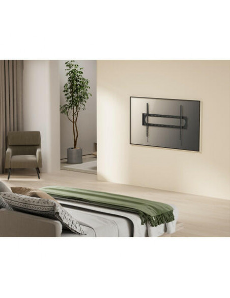 Suporte de parede fixo Equip Ergo para televisores e monitores LED/LCD com dimensões de 60" a 120".  Suporta até 120 kg e é compatível com padrões VESA até 900x600.  A placa de parede deslizante facilita a instalação e remoção. Construção robusta e segura para uma fixação estável.