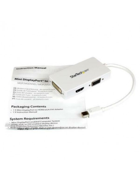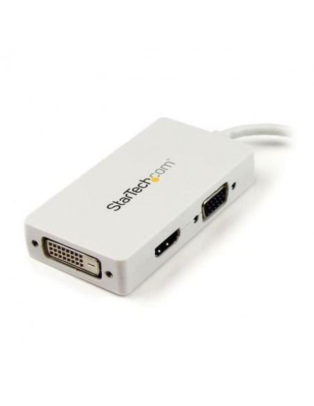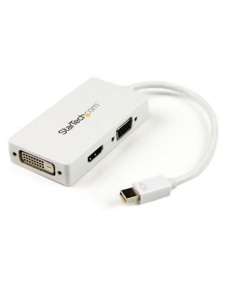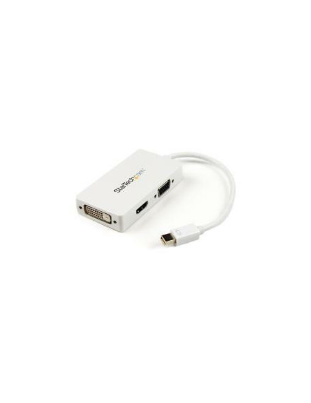 O Cabo A/V StarTech.com Mini DisplayPort/VGA/DVI/HDMI oferece versatilidade para conectar dispositivos com Mini DisplayPort a monitores, projetores ou TVs com entrada VGA, DVI ou HDMI.  Com design branco e construção robusta, garante uma conexão estável e de alta qualidade.  Oferece compatibilidade com MacBook Pro e MacBook Air.