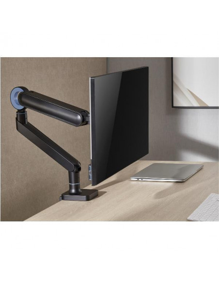 Este suporte de mesa da Equip é a solução ideal para melhorar a ergonomia e organização do seu espaço de trabalho. Projetado para monitores de 17" a 35" com um peso máximo de 10,5 kg, oferece suporte seguro e ajustável. Construído em aço e alumínio de alta qualidade, garante durabilidade e estabilidade. As três articulações permitem ajustar a altura e o ângulo do monitor para uma visualização personalizada e um conforto otimizado. Compatível com padrões VESA 75x75mm e 100x100mm, este suporte assegura uma fácil instalação na maioria dos monitores. O seu design elegante e funcional permite uma integração harmoniosa em qualquer ambiente de trabalho, melhorando a organização e a eficiência. Escolha este suporte para uma solução prática e duradoura que garante o máximo conforto e produtividade.