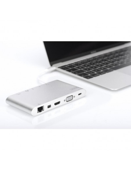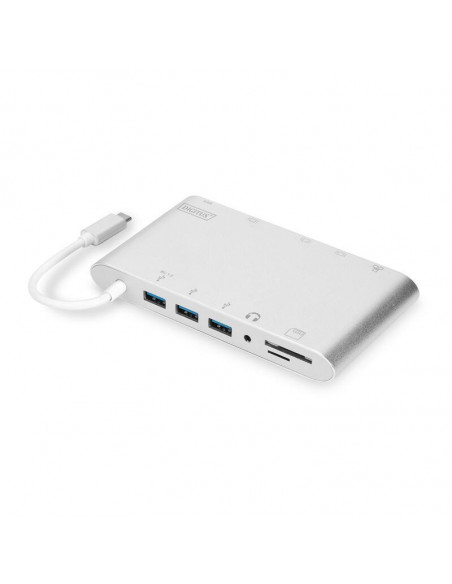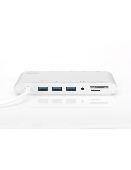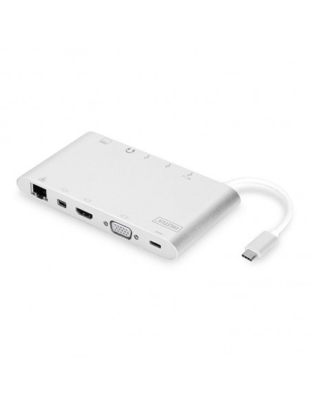 A estação de docking Digitus DA-70861 é uma solução universal para expandir a conectividade do seu smartphone ou portátil com USB-C. Com um design elegante em alumínio prateado, oferece uma ampla gama de portas, incluindo HDMI, Mini DisplayPort, VGA, USB 3.2 Gen 1 e Ethernet LAN.