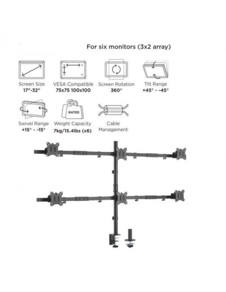 Suporte EQUIP 65016007101 para 6 Monitores (17''-32'') Articulado, Mesa