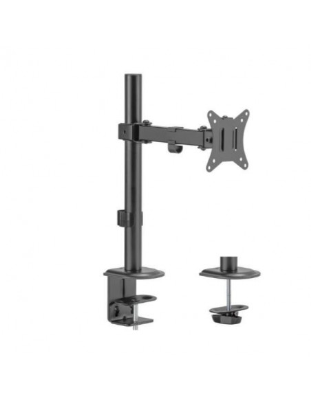 O suporte de monitor articulado EQUIP proporciona uma solução ergonómica e versátil para optimizar a sua configuração de trabalho. Compatível com a maioria dos monitores com tamanho de ecrã entre 17" e 32", este suporte permite ajustar a altura, a inclinação e a rotação do seu monitor, proporcionando conforto e flexibilidade durante longos períodos de utilização. Com uma capacidade de carga máxima de 9 kg, suporta a maioria dos monitores de tamanho médio a grande. Fabricado em metal e plástico de alta qualidade, na cor preta, este suporte combina durabilidade e um design discreto que se integra facilmente em qualquer ambiente. As dimensões compactas (308mm x 561mm x 116mm) tornam-no ideal para diversas configurações de trabalho, ocupando pouco espaço na sua secretária. É importante notar que este suporte não possui passa cabos nem compartimento porta-objetos.