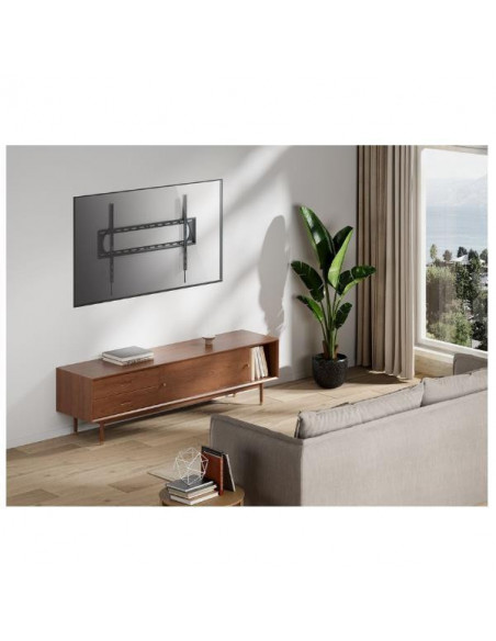 Suporte de parede fixo EQUIP para televisores de 60" a 120". Suporta até 120 kg. Distância à parede de apenas 3,5 cm. Compatível com diversos padrões VESA. Instalação simples e intuitiva.