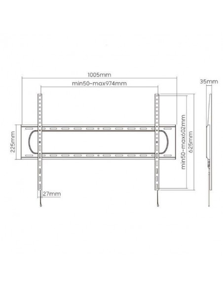 O suporte de parede fixo da EQUIP é a solução ideal para instalar televisores de grandes dimensões de forma segura e discreta. Concebido para televisores com dimensões entre 60" e 120", suporta um peso máximo de 120 kg, assegurando uma fixação estável e robusta. A sua reduzida distância à parede, apenas 3,5 cm, permite uma visualização otimizada, sem comprometer a estética do ambiente. Este suporte é compatível com uma vasta gama de padrões VESA, garantindo a compatibilidade com inúmeros modelos de televisores. Os padrões VESA suportados incluem: 200x200mm, 300x300mm, 400x200mm, 400x300mm, 400x400mm, 600x400mm, 600x600mm, 800x400mm e 800x600mm. Fabricado com materiais de alta qualidade, em aço, este suporte oferece durabilidade e resistência excepcionais, garantindo a segurança do seu televisor a longo prazo. A instalação é simples e intuitiva, proporcionando uma configuração rápida e fácil. As dimensões do suporte são: Altura: 625 mm, Comprimento: 1005 mm, Profundidade: 35 mm e Peso: 3160 g. O suporte é de cor preta. Instale a sua televisão com segurança e estilo, desfrutando de uma visualização perfeita sem comprometer o design da sua divisão. Para informações mais detalhadas, consulte a ficha técnica disponível em: [https://iland.sbs/DataSheets/?idarticolo=65033807101](https://iland.sbs/DataSheets/?idarticolo=65033807101)