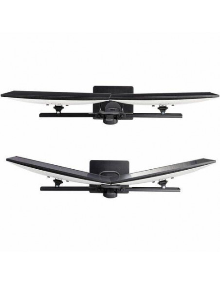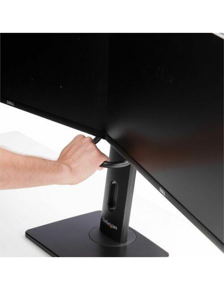 O suporte para dois monitores StarTech.com 2MC1S-MONITOR-STAND permite uma configuração ergonómica e eficiente, com ajuste de altura, inclinação e rotação.  Ideal para produtividade e conforto.